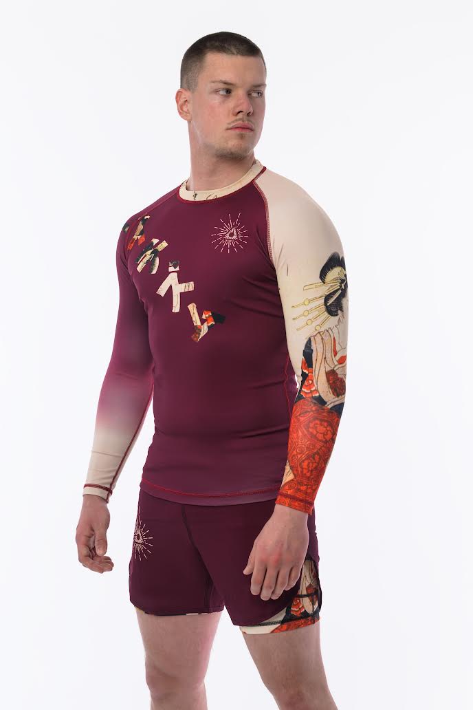 Akai (赤い / あかい) is the Japanese word for red; the color of aggression and passion. A strong presence on the mat or in the ring. The contrasting beige represents calmness, simplicity, and neutrality; the peace within the chaos of Martial Arts. This nod to the Yin-Yang philosophy is reflected in our Akai set.