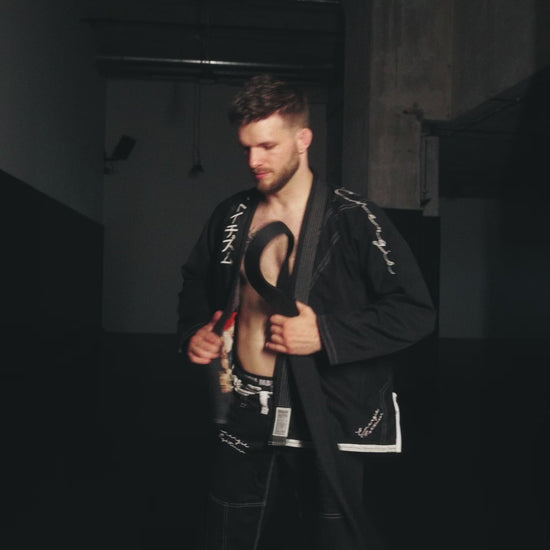 Een unieke, diepzwarte gi & een unieke witte gi gemaakt van ongebleekt katoen, met veel details en een verhaal erachter. Voor de stof kozen we een lichtgewicht 350 g/m² weving om de binnenvoering te compenseren. Het is alsof je een zijden kimono aantrekt! Naadloos en uniek ontwerp: Alle prints zijn op ingewikkelde wijze geborduurd in bijpassende kleuren.