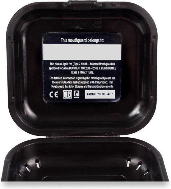 Makura's IGNIS mouthguard features a dual-layer design that combines a durable SHOKBLOKER™ outer shell with a GELFORM™ inner layer, delivering superior protection and a snug, comfortable fit. Its BOIL & BITE™ technology ensures a secure and personalized fit, providing unmatched comfort during use. The IGNIS mouthguard is latex-free and equipped with a breathable channel, allowing better airflow even when the jaw is closed. Anti-slip pads on the underside keep the mouthguard firmly in place during intense activity.